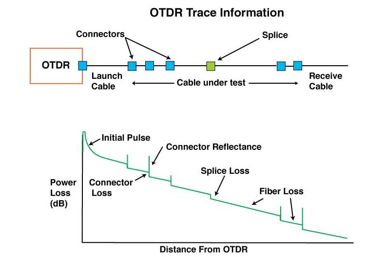 OTDR用于测试新安装的光纤链路的性能并检测其中可能存在的问题。其目的是在光纤链路上的任何位置检测,定位和测量元件。OTDR就像雷达一样工作-它向光纤发送脉冲并寻找返回信号,从光纤的测量中创建一个称为“迹线”或“特征”的显示器。只需连接光纤的一端,OTDR就可以计算光纤衰减,均匀性,接头和连接器损耗,然后提供图形迹线特征(以dB为单位的光功率与光纤长度的关系图)。它能够定位和测量反射率和损耗,使OTDR成为故障排除和故障定位设备的首选。
