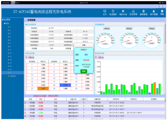 3、自动分析和判断各个站点蓄电池组的隐患程度并及时发出警报信息,同时将报警事件备案存储,以备查询。