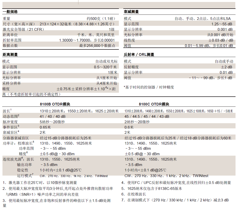 • 其盲区性能,能以2米的间隔分析光纤链路上的全部要素事件特性